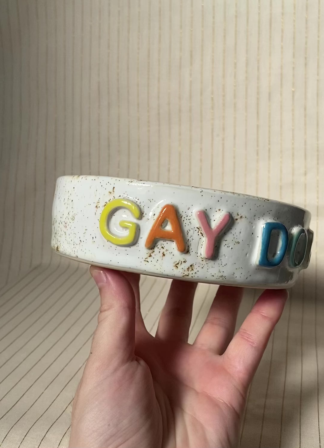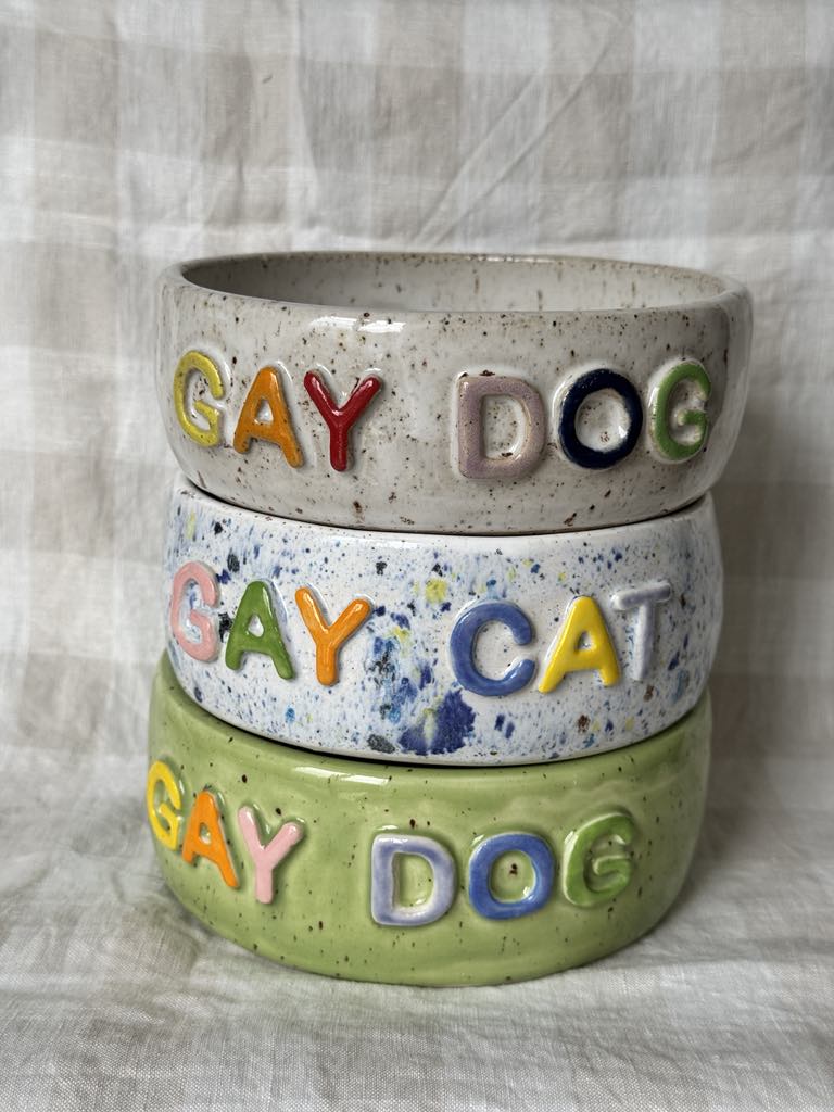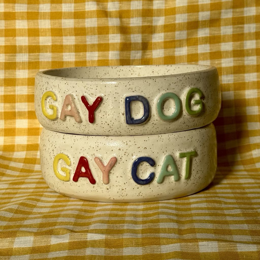 These personalised homemade bowls are perfect for the gay dog (or cat) in your life. 💗🌈ðŸ¤