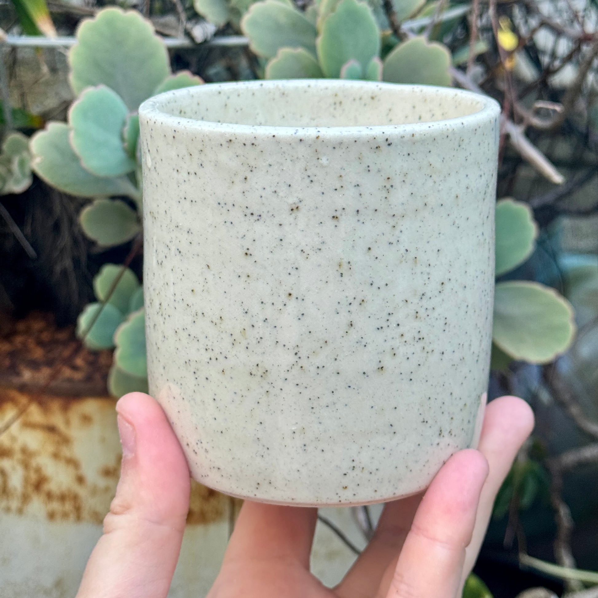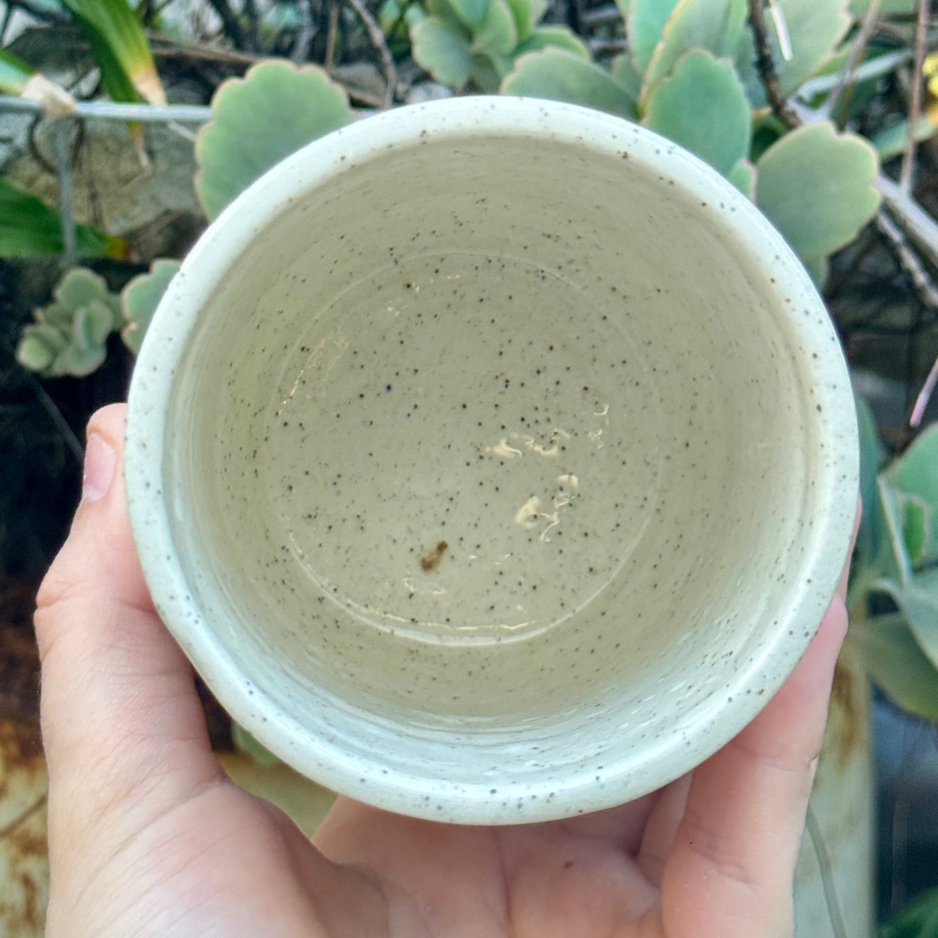 - This is a seconds sale item - there is a piece of kiln dust that fell into the cup during the firing. This item is not food safe.